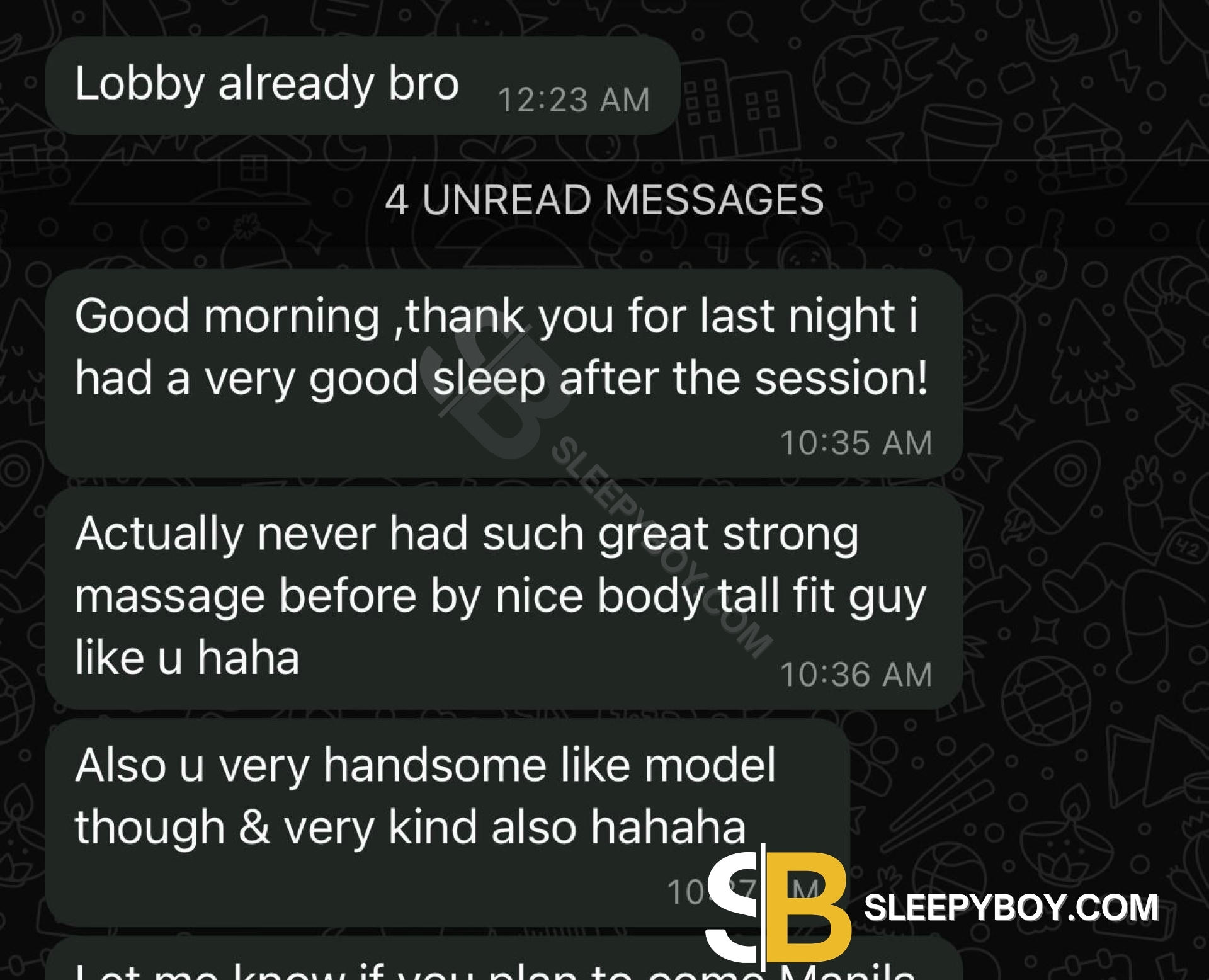 Will not reply to messages without any look & that is not appropriate. Sometimes i reply abit late due to my work & coaching at the gym.